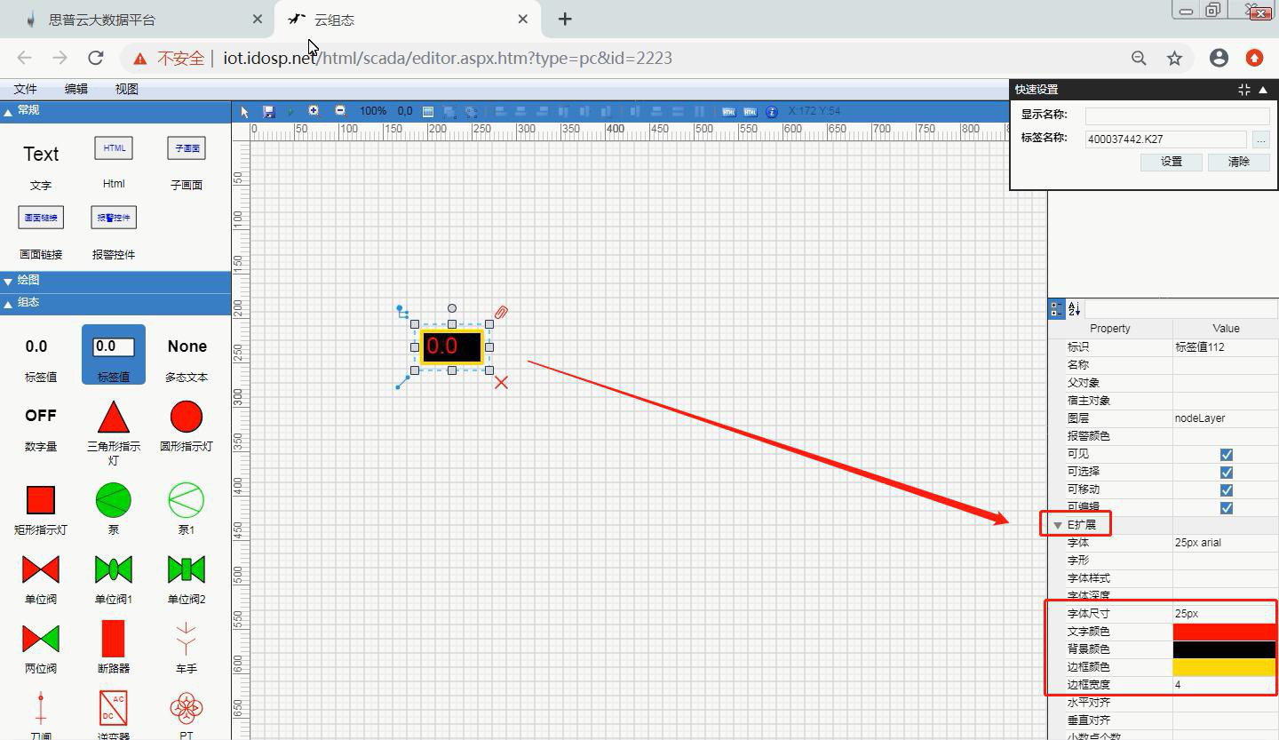 思普云设备组态控件旋转操作使用说明注意:必须先添加产品,配置点表,组态才能绑定产品和变量,点击界面右上角的大数据中心按钮 ,打开实时监控下的实时组态,选择设备, 查看组态。
